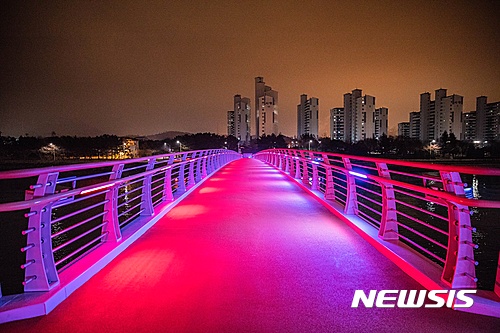 【광양=뉴시스】김석훈 기자 = 전남 광양시 중마동과~금호동을 잇는 해상보도교가 31일 임시개통을 앞두고 최종 점검을 위해 조명을 밝히고 있다. 총연장 300m, 폭 4m의 규모의 해상 보도교가 아름다운 야경으로 광양을 대표하는 핵심 볼거리가 될 것으로 기대된다고 30일 시관계자는 밝혔다.2017.03.30. (사진=광양시청 제공)
