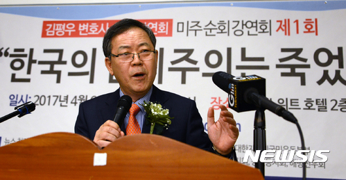 【L.A(미국)=뉴시스】김운영 편집위원 = LA 한인단체들의 주최로 김평우변호사의 강연회가 6일 오후 2시 LA코리아타운 가든스위트 호텔에서 열렸다.