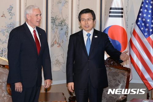 【서울=뉴시스】전진환 기자 = 황교안 대통령 권한대행 국무총리가 17일 오후 서울 삼청동 총리공관에서 마이크 펜스 미국 부통령을 면담하고 있다. 2017.04.17.