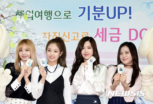 【인천공항=뉴시스】홍찬선 기자 = 걸그룹 블랙핑크가 1일 오후 인천공항에서 열린 인천본부세관 홍보대사 위촉식에서 명예대사증을 보여주고 있다. 2017.05.01.