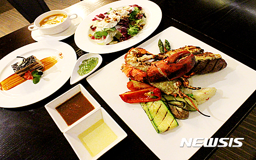 【서울=뉴시스】스탠포드 호텔 ‘맨하탄 그릴 앤 바’의 ‘랍스터와 양갈비 세트’.