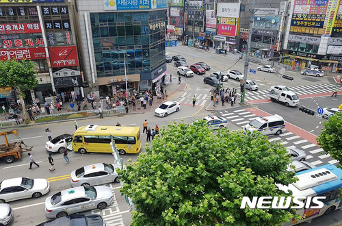 【청주=뉴시스】이병찬 기자 = 5일 오후 1시께 충북 청주시 사창교차로 대형 교통사고가 발생해 보행자 등 10여명이 사상했다. 경찰 등이 사고 현장을 수습하고 있다.2017.07.05.(사진=페이스북)
