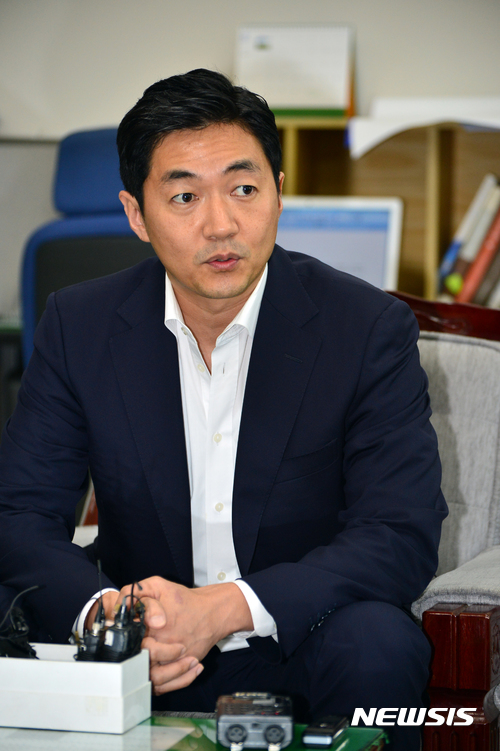 【청주=뉴시스】인진연 기자 = 충북 청주국제공항을 거점으로 출범하는 저비용항공사(LCC) '에어로 K'의 강병호 대표가 25일 충북도청 기자실에서 기자들의 질문에 답하고 있다. 2017.08.25