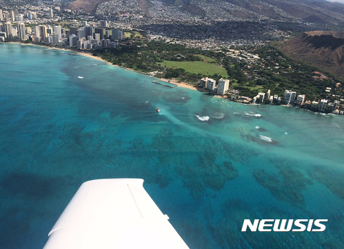【호놀룰루(하와이)=AP/뉴시스】하와이 호놀룰루의 관광명소인 와이키키 해변의 11일 사진. 이 곳의 고급 식당에서 식사를 한 45명이 지난 9일 복통 , 구토등으로 쓰러졌으며 그 중 6건에서 노로바이러스가 발견되었다고 하와이 보건당국이 14일 밝혔다. 2017.10.15