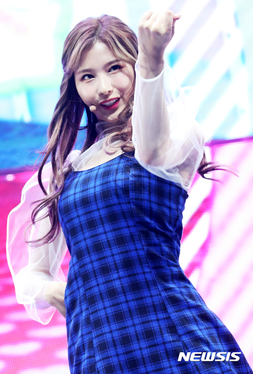 【서울=뉴시스】고승민 기자 = 걸그룹 '트와이스' 사나가 30일 오후 서울 광진구 예스24라이브홀에서 열린 정규앨범 '트와이스타그램' 발표 쇼케이스에서 타이틀곡 '라이키(Likey)'를 열창하고 있다. 2017.10.30.