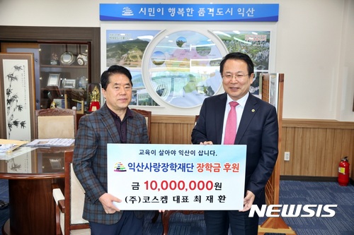 익산사랑장학재단에 장학금 기탁하는 최재환 코스켐 대표