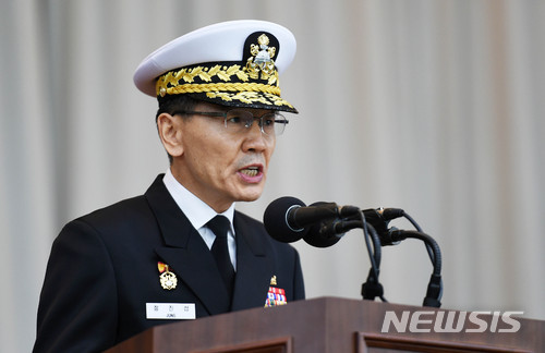 【평택=뉴시스】이정선 기자 = 제24대·25대 해군 2함대 사령관 이·취임식이 열린 2일 오후 경기 평택 해군 2함대에서 정진섭 해군 작전사령관이 훈시를 하고 있다. 2018.01.02.