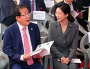 【서울=뉴시스】 5일 서울 서대문구 이화여자대학교 ROTC관에서 열린 2018년 학군사관후보생 동계 입영훈련 출정식에 참석한 김혜숙 총장이 후보생들과 대화를 하고 있다. 2018.01.05. (사진=이화여자대학교 제공)