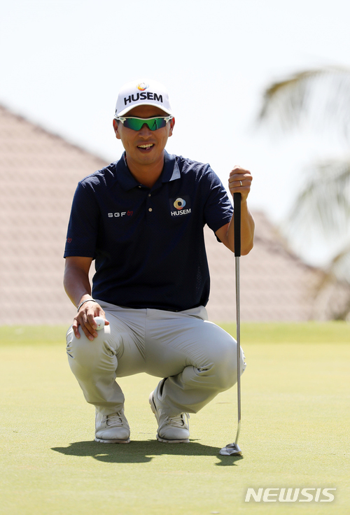 【서울=뉴시스】 4일 베트남 무이네 씨링크 골프 리조트에서 열린 제7회 휴셈챌린지 1라운드에서 문경준이 4번홀 그린 환한 미소를 짓고 있다. 2018.02.04. (사진=팀휴셈 제공)