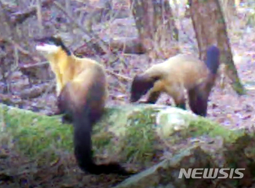 【광주=뉴시스】류형근 기자 = 무등산에서 발견되고 있는 멸종위기생물 2급 노랑목도리담비. 무등산국립공원사무소는 노랑목도리담비 보호를 위해 개체수 확인에 나섰다고 18일 밝혔다. 2018.02.18. (사진=무등산국립공원사무소 CCTV 캡처)