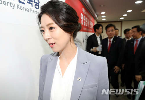 【서울=뉴시스】박영태 기자 = 9일 오전 서울 영등포구 여의도 자유한국당 당사에서 열린 자유한국당 영입인사 환영식을 끝낸 배현진 전 아나운서가 회의실을 나서고 있다. 2018.03.09.