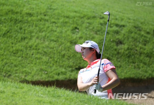 【서울=뉴시스】 16일 브루나이에 위치한 엠파이어 호텔 컨트리클럽에서 열린 브루나이 레이디스 오픈 연습라운드에서 박성원이 벙커샷 후 볼을 바라보고 있다. 2018.03.16. (사진=KLPGA 제공)