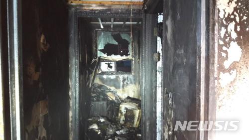 【고양=뉴시스】이경환 기자 = 20일 오전 1시10분께 경기 고양시 덕양구의 4층짜리 모텔에서 불이 나 20여분 만에 진화됐다. 2018.03.20.(사진=고양소방서 제공)