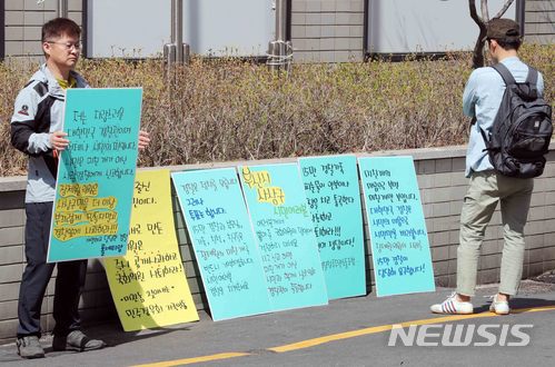 장제원 의원 부산사무실 앞서 폴네티앙 릴레이 1인 시위