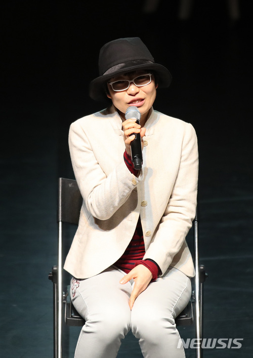 【서울=뉴시스】김진아 기자 = 4일 서울 중구 정동극장에서 열린 '궁:장녹수전'에서 경민선 작가가 취재진의 질문에 답하고 있다.