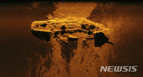 【AP/뉴시스】지난 2014년 238명의 탑승객을 태운 채 실종된 말레이시아 항공 370편을 찾기 위해 71만㎢에 걸친수색 작업으로 발견된 침몰 선박. 이 선박은 W 고든호이거나 막달라호인 것으로 추정된다고 해양사학자들은 말했다. 사진은 호주 교통안전청이 배포했다. 2018.5.4