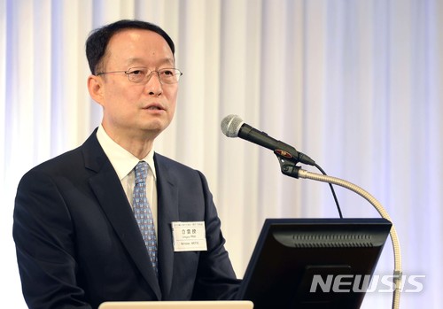 【서울=뉴시스】 백운규 산업통상자원부 장관이 8일 일본 동경 가조엔호텔에서 열린 '한일 원전 안전·해체 포럼'에 참석해 축사를 하고 있다. 2018.05.08. (사진=산업통상자원부 제공)