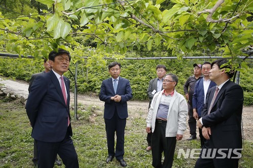 【서울=뉴시스】 라승용 농촌진흥청장이 8일 강원도 원주시 호저면 토종다래를 재배하는 정성윤 농가를 찾아 원주지역 특화작목인 치악산 토종다래 육성과 활성화 방안에 대해 이야기를 나누고 있다. 2018.05.08. (사진=농촌진흥청 제공)