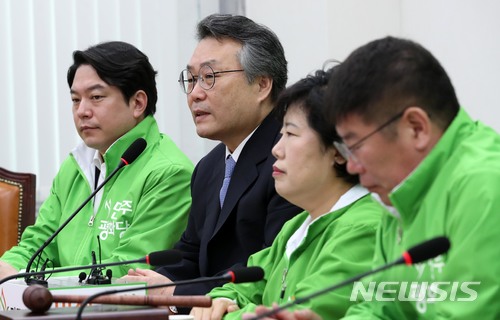 【서울=뉴시스】홍효식 기자 = 민주평화당 김종배 광주시장 후보가 14일 오전 서울 여의도 국회에서 열린 제10차 중앙선거대책위원회 회의에 참석해 인사말을 하고 있다. 왼쪽부터 정호준 서울시당 선대위원장, 김 후보, 조배숙 대표, 김경진 상임선대위원장. 2018.05.14.