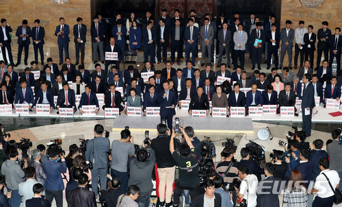본회의장 입구 막은 자유한국당 의원과 보좌진
