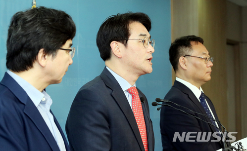 【서울=뉴시스】이종철 기자 = 더불어민주당 박용진 의원이 15일 오전 서울 여의도 국회 정론관에서 삼성바이오로직스 분식회계와 관련한 기자회견을 하고 있다. 2018.05.15.