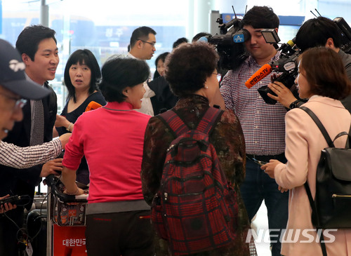 【인천공항=뉴시스】홍찬선 기자 = 지난 13일 터키 이스탄불 공항에서 발생한 아시아나 항공기와 터키항공의 항공기가 충돌한 사고가 발생한 가운데 당시 아시아나항공에 탑승했던 일부 승객들이 15일 오후 인천공항에 귀국하고 있다. 2018.05.15.