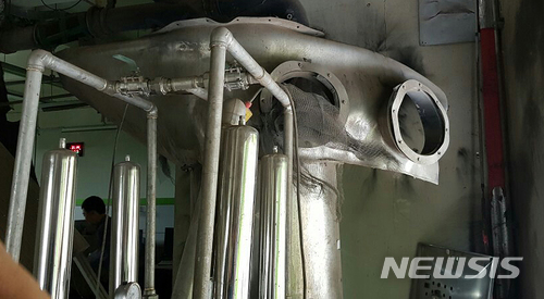 【대전=뉴시스】함형서 기자 = 16일 오후 2시 22분께 대전 유성구 한전원자력연료 건물 1층에서 배관공사 중이던 집진기가 폭발해 있다.2018.05.16(사진=대전지방경찰청 제공)