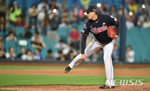 【대구=뉴시스】우종록 기자 = 24일 오후 대구 수성구 삼성라이온즈파크에서 열린 2018 프로야구 신한은행 마이카 KBO리그 롯데 자이언츠 와 삼성 라이온즈 경기, 7회말 롯데 교체된 투수 배장호가 역투하고 있다. 2018.05.24.