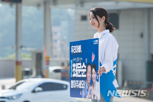 피켓 든 최문순 후보 자녀 최예린씨