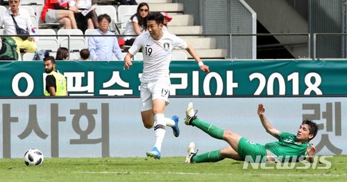 【인스브루크(오스트리아)=뉴시스】고범준 기자 = 7일 오후(현지시간)오스트리아 인스브루크 티볼리노이 스타디움에서 열린 2018 러시아월드컵 대비 대한민국-볼리비아의 평가전 경기, 한국 손흥민이 공격을 하고 있다.