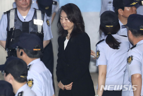 【서울=뉴시스】최진석 기자 = 조윤선 전 문체부 장관이 8일 오전 서울 서초구 서울중앙지법에서 열린 '화이트리스트' 관련 7차 공판에 출석하고 있다. 2018.06.08.