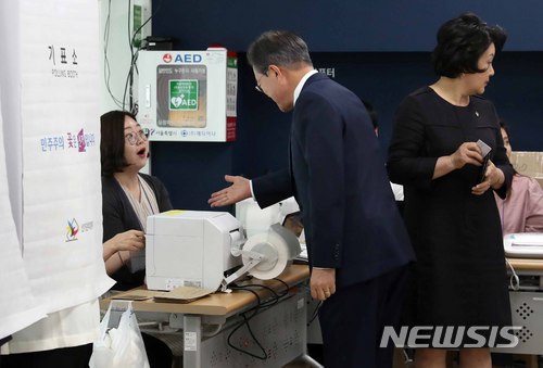 현직 대통령이 사전투표에 참여하는 것은 2013년 상반기 재보선 때 사전투표제가 도입된 이후 이번이 처음이다. 2018.06.08.
