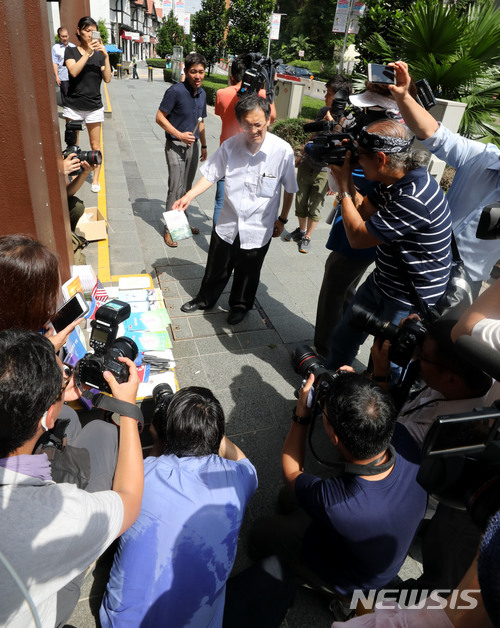 이 일본인은 북미 정상회담의 분위기를 고조 시키기 위해 북한 숙소 앞을 찾았다고 말했다. 2018.06.11.