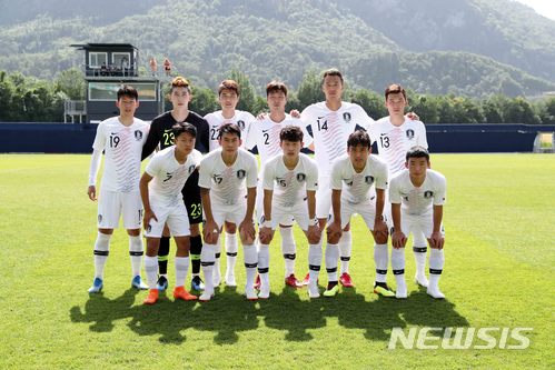 【그로딕 다스(오스트리아)=뉴시스】고범준 기자 = 11일(현지시간) 오스트리아 그로딕 다스 골드버그 스타디움에서 열린 2018 러시아월드컵 대비 축구 국가대표 평가전 대한민국-세네갈과의 비공개 평가전 경기, 한국 베스트일레븐이 기념촬영을 하고 있다. 2018.06.12. (사진=대한축구협회 제공)