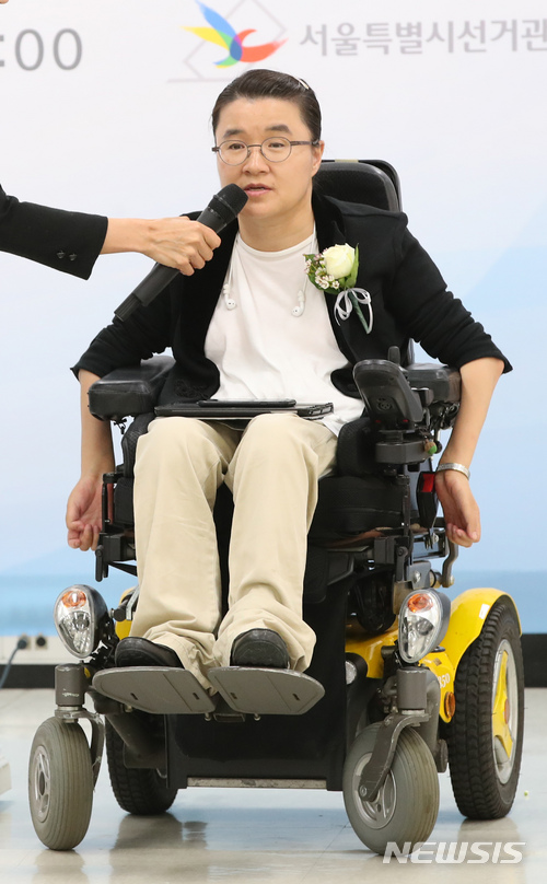 【서울=뉴시스】김선웅 기자 = 15일 서울 종로구 서울특별시선거관리위원회에서 열린 6.13 지방선거 당선증 교부식에서 서울시 비례대표 시의원 바른미래당 김소영 의원이 소감을 전하고 있다. 2018.06.15.