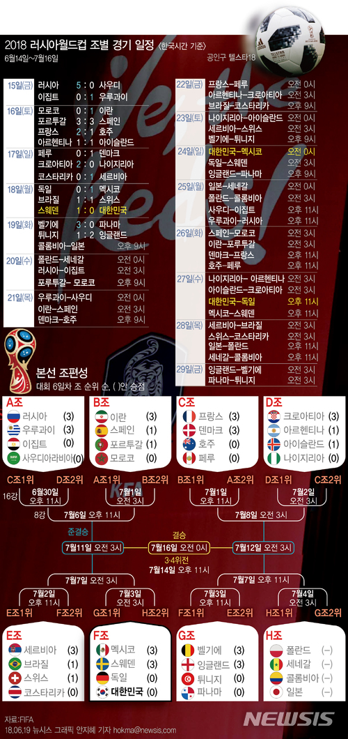 [그래픽]2018 러시아월드컵 경기 일정 및 조별순위