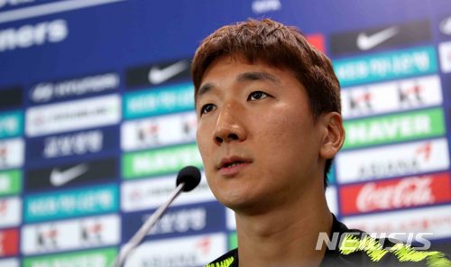 【상트페테르부르크(러시아)=뉴시스】고범준 기자 = 20일(현지시간) 오전 한국 축구대표팀 정우영이 베이스캠프인 러시아 상트페테르부르크 로모노소프 스파르타크 스타디움에서 훈련에 앞서 인터뷰를 하고 있다.