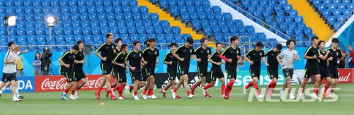 【로스토프나도누(러시아)=뉴시스】고범준 기자 = 2018 러시아월드컵 조별리그 F조 2차전 대한민국과 멕시코의 경기를 앞둔 22일 오후(현지시간) 러시아 로스토프 아레나에서 한국 축구대표팀 선수들이 공식 훈련을 하고 있다.
