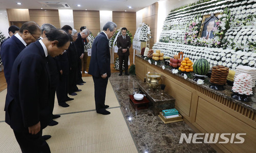 【서울=뉴시스】추상철 기자 = 고 김종필 전 국무총리가 향년 92세로 별세한 23일 오후 서울 송파구 서울아산병원에 마련된 빈소에서 일반 조문객들이 조문을 하고 있다. 2018.06.23.