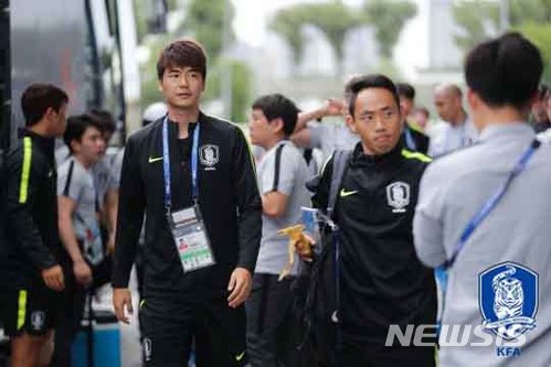 【카잔(러시아)=뉴시스】고범준 기자 = 한국 축구대표팀 기성용이 2018 러시아월드컵 조별리그 F조 3차전 대한민국과 독일의 경기를 하루 앞둔 26일(현지시간) 러시아 카잔 챈트랄니스타디움에서 공식훈련을 위해 들어서고 있다. 2018.06.27. (사진=대한축구협회 제공)