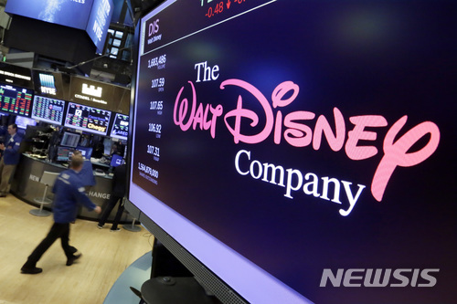 【뉴욕=AP/뉴시스】2017년 8월8일 뉴욕 증권거래소의 전광판에 월트 디즈니사의 로고가 나타나 있다. 월트 디즈니는 27일(현지시간) 미 반독점 당국으로부터 폭스 엔터테인먼트의 자산을 713억 달러(약 80조원)에 인수하는 것이 반독점 규제에 위배되지 않는다는 승인을 얻었다. 2018.6.28