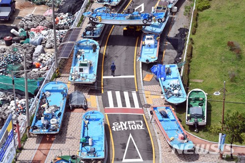 태풍 북상 소식에 소형어선 육상 대피