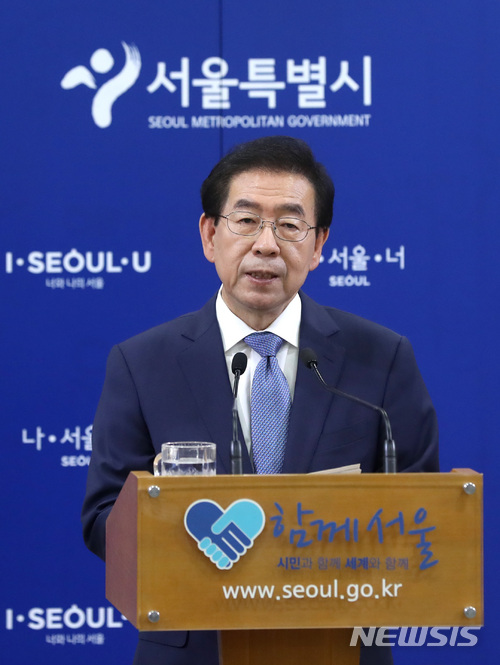 【서울=뉴시스】임태훈 기자 = 박원순 서울시장이 2일 오전 서울 중구 시청 브리핑룸에서 민선 7기 취임 기자간담회를 하고 있다. 2018.07.02.