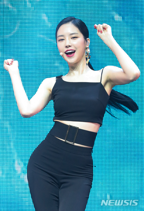 【서울=뉴시스】조수정 기자 = 그룹 에이핑크 손나은이 2일 오후 서울 광장동 예스이십사라이브홀에서 개최한 미니 7집 앨범 '원앤식스(ONE & SIX)’ 발매 쇼케이스에서 신곡을 선보이고 있다. 2018.07.02. [email protected]