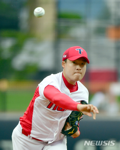 【광주=뉴시스】류형근 기자 = 4일 오후 광주-기아챔피언스필드에서 열린 2018프로야구 KIA 타이거즈 대 한화 이글스의 경기, KIA 선발투수 한승혁이 1회초 무사에서 역투하고 있다. 2018.07.04.