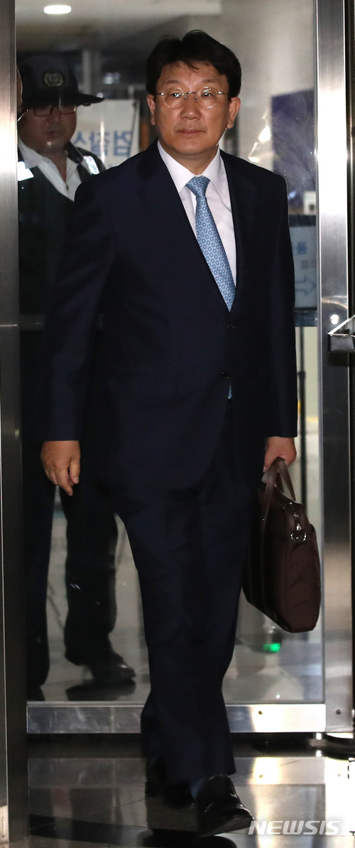 【서울=뉴시스】김선웅 기자 = 강원랜드 채용 부정청탁으로 업무방해, 제3자 뇌물수수, 직권남용 권리행사 방해 혐의와 관련해 구속영장이 기각된 권성동 자유한국당 의원이 5일 오전 서울 도봉구 서울북부지방검찰청에 위치한 강원랜드 채용비리 관련 수사단을 나서고 있다. 2018.07.05.