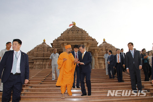 문재인 대통령, '악샤르담' 힌두사원 방문