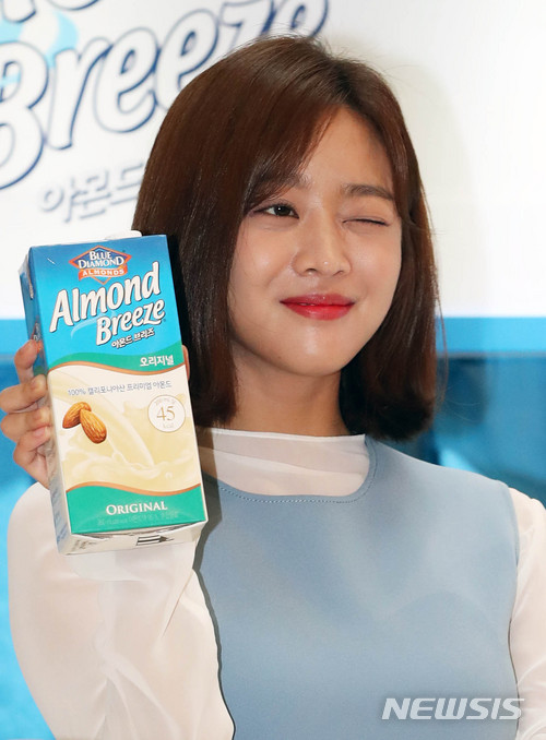 【서울=뉴시스】홍효식 기자 = 배우 조보아가 10일 오전 서울 여의도 IFC몰에서 열린 '아몬드 브리즈 라떼, 같이 마실래?' 팝업카페 행사에서 포즈를 취하고 있다. 2018.07.10.