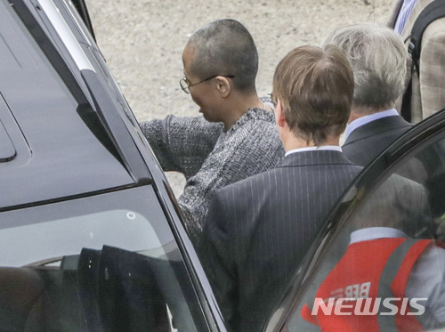 【베를린=AP/뉴시스】지난해 7월 간암으로 타계한 중국 인권운동가이자 노벨평화상 수상자 류샤오보(劉曉波)의 부인 류샤(劉霞·57)가 10일(현지시간) 독일 베를린의 공항에 도착한 뒤 차량으로 이동하고 있다. 2018.7.11.