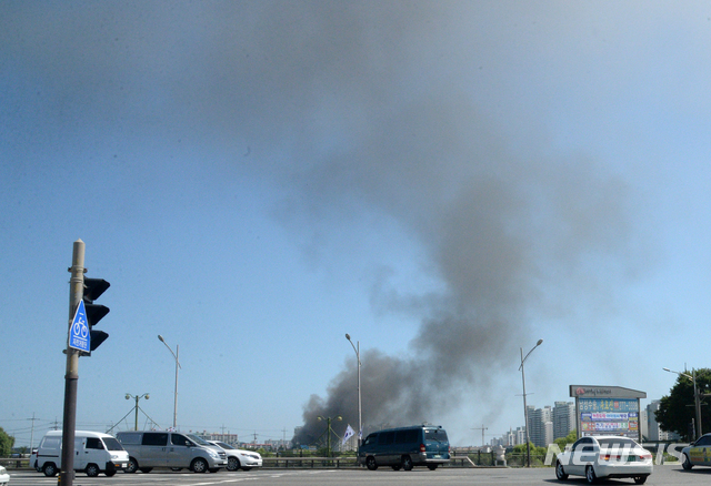 전주 뒤덮은 화재의 검은연기